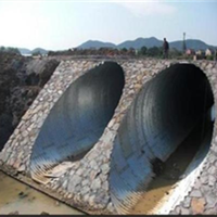 3、波纹涵管施工时,采用分段施工的方法,预先在原拱涵基底用角钢并排两根,长度根据涵长确定。作涵管推进时的滑轨,波纹涵管管径根据工程需要可有不同的规格,整装管管径为0.5m--2.5m; 每节管长度3米左右。采用内(外)法兰螺栓连接。拼装管管径为3m--8m。每个圆周方向有4---15块板组成,板与板搭接gaoqiang螺栓紧固。